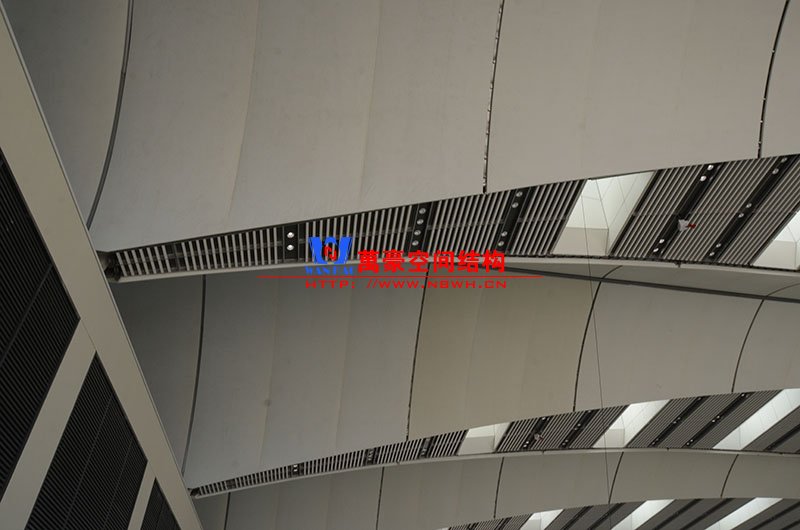 青島紅島國際會議中心幕墻膜結(jié)構(gòu)工程,由寧波萬豪空間結(jié)構(gòu)工程有限公司承建,現(xiàn)場測量、深化設(shè)計(jì)、制作及安裝由寧波萬豪全權(quán)負(fù)責(zé)。該工程用鋼量1000多噸,PTFE室內(nèi)屋面膜結(jié)構(gòu)展開面積17000多平方米,PTFE室外屋面膜結(jié)構(gòu)展開面積20000多平方米。