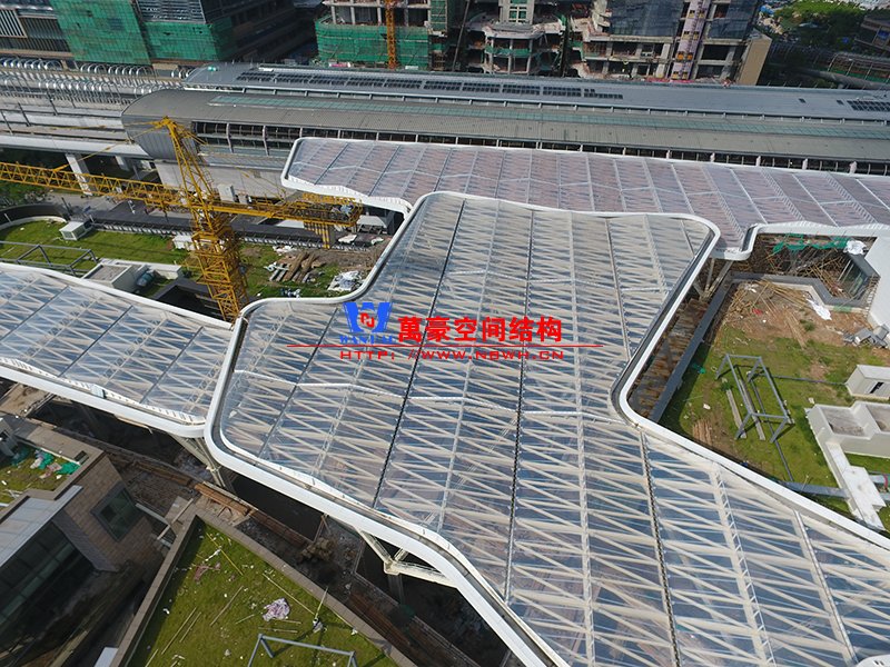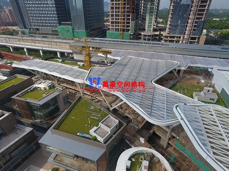 深圳龍華地鐵站ETFE膜結(jié)構(gòu)天幕項目由我公司負責設(shè)計及承建,項目由4個出入口單體組成,ETFE展開面積7800平米,二次鋼結(jié)構(gòu)120噸,結(jié)構(gòu)落柱采用目前最流行的樹形節(jié)點支撐,在結(jié)構(gòu)安全的同時更具層次感。同時該項目也完美突出了ETFE膜材高透光、高自潔性及耐高溫的優(yōu)點。