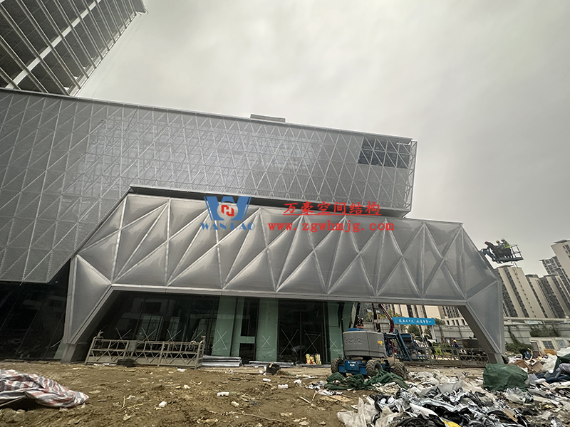 中建錦源匯廣場10-3#樓膜結(jié)構(gòu)工程位于四川省成都市高新區(qū)應(yīng)龍南一路與觀東二街交匯處,該項目ETFE膜結(jié)構(gòu)展開面積700平米,PTFE膜結(jié)構(gòu)展開面積700平米。由寧波萬豪空間結(jié)構(gòu)工程有限公司承建