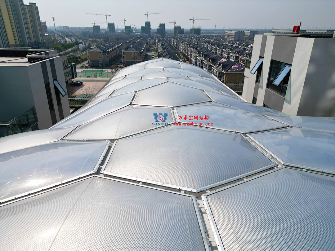 嘉興長(zhǎng)安里ETFE氣枕鋼膜結(jié)構(gòu)頂棚工程位于嘉興市長(zhǎng)安里街區(qū),該項(xiàng)目總用鋼量約440噸,ETFE膜結(jié)構(gòu)展開面積約3200平米。