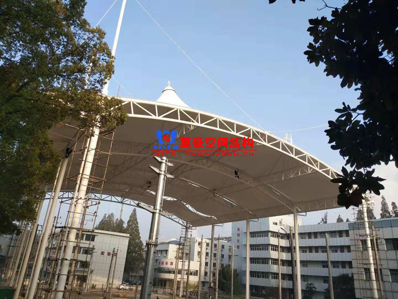 安慶培訓(xùn)基地大棚膜結(jié)構(gòu)工程位于安徽省安慶市電力培訓(xùn)基地內(nèi),該工程用鋼量150噸,膜結(jié)構(gòu)展開(kāi)面積3000平米。
