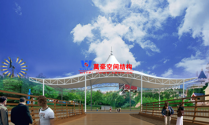 什么是出入口膜結(jié)構(gòu)?出入口膜結(jié)構(gòu)一般指的是應(yīng)用了張拉膜結(jié)構(gòu)的出入口建筑,比如小區(qū)崗?fù)ぁ④噹?kù)出入口、收費(fèi)站等。出入口膜結(jié)構(gòu)體系由膜面、邊索、脊索、谷索、支承結(jié)構(gòu)、錨固系統(tǒng),以及各部分之間的連接節(jié)點(diǎn)等組成。以上是出入口膜結(jié)構(gòu)工程的設(shè)計(jì)效果圖,改天萬(wàn)豪再給大家展示下實(shí)際案例。