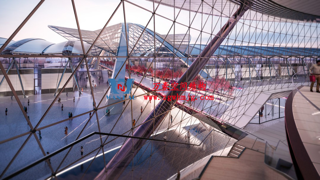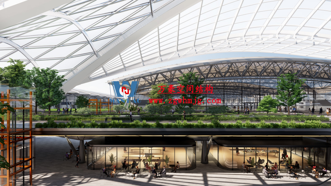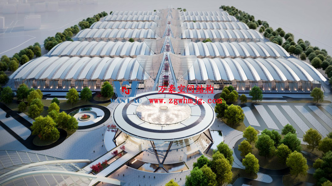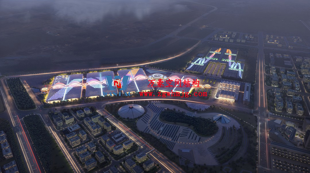 鄭州中原高鐵港數(shù)字展貿(mào)城項(xiàng)目坐落于鄭州航空港經(jīng)濟(jì)綜合實(shí)驗(yàn)區(qū)中原國(guó)際會(huì)展中心二期,總占地面積2450畝,規(guī)劃總建筑面積為52.74萬(wàn)平方米。主體結(jié)構(gòu)將由多個(gè)大型鋼構(gòu)支撐,可承受巨大的荷載。整個(gè)建筑外立面及部分屋頂將覆蓋 ETFE 氣枕膜,其余部分將覆蓋PTFE膜,打造出通透、現(xiàn)代的建筑外觀。該項(xiàng)目用鋼量超10萬(wàn)噸,ETFE膜屋面超3萬(wàn)平方米,PTFE膜屋面超10萬(wàn)平方米。