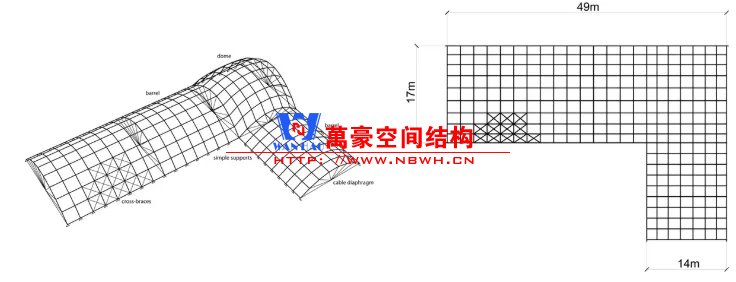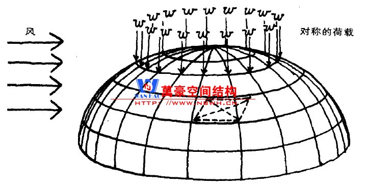 網(wǎng)殼受力方式為薄膜作用,屬于拱結(jié)構(gòu)向三維的拓展;因此,與拱類似的問題會出現(xiàn)在網(wǎng)殼上。比如:整體穩(wěn)定問題;不對稱荷載敏感等。