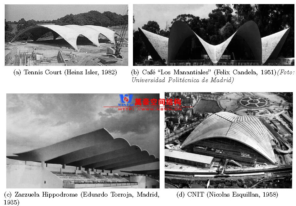 說網(wǎng)殼結(jié)構(gòu),就得從混凝土薄殼開始說起。在20世紀中葉,混凝土薄殼蓬勃發(fā)展。EduardoTorroja,F(xiàn)elix Candela,Nicolas Esquillan,Heinz Isler等在世界各地都實踐了很多混凝土薄殼作品。他們的殼體纖薄明快,放到現(xiàn)在看也都是建筑與結(jié)構(gòu)融合的精品。