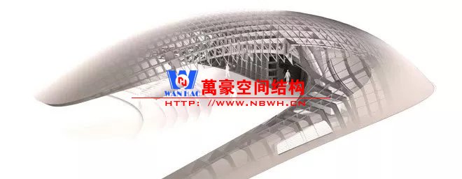 可能是因?yàn)殍旒芨叨刃?,用開洞的空腹形式更易于實(shí)施,建筑造型優(yōu)美。表皮為不銹鋼板,厚度10mm-30mm,屋面1400平米,425t不銹鋼。