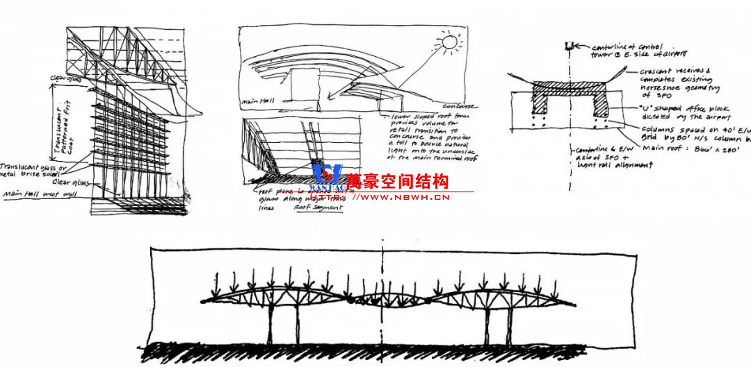 關(guān)西機(jī)場建筑設(shè)計概念上追求連續(xù)的空間感受。建筑建筑上呈現(xiàn)流動的形態(tài)。結(jié)構(gòu)上采用了82.8米超大跨度的空間桁架。