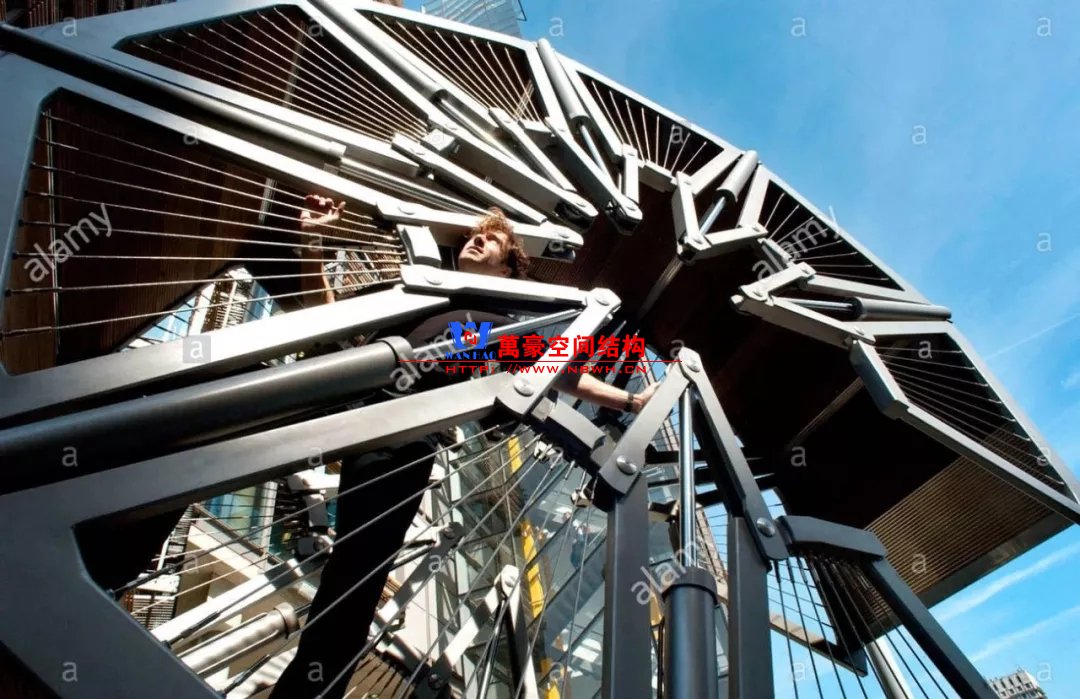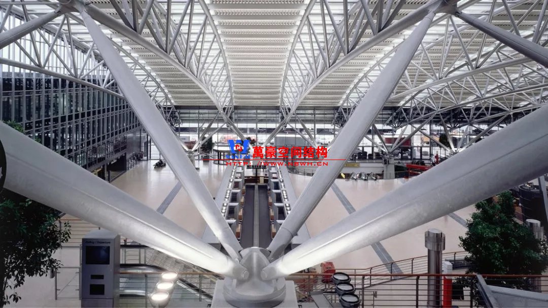 空腹桁架的直腹桿承受較大的剪力和彎矩,桁架整體的效率不如普通桁架,但形狀更加簡潔明快,在建筑功能上獨(dú)特的適用性。