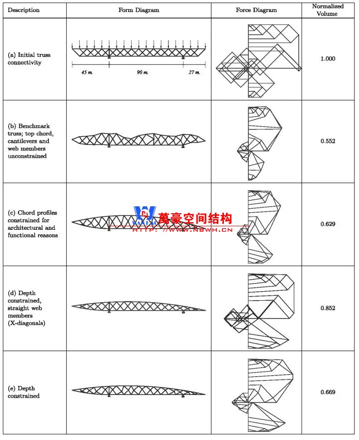 SOM 和 UIUC 合作的論文中曾介紹了一種創(chuàng)新性的設(shè)計方法,根據(jù)圖解法的優(yōu)化分析,尋找桁架布置的最優(yōu)解。