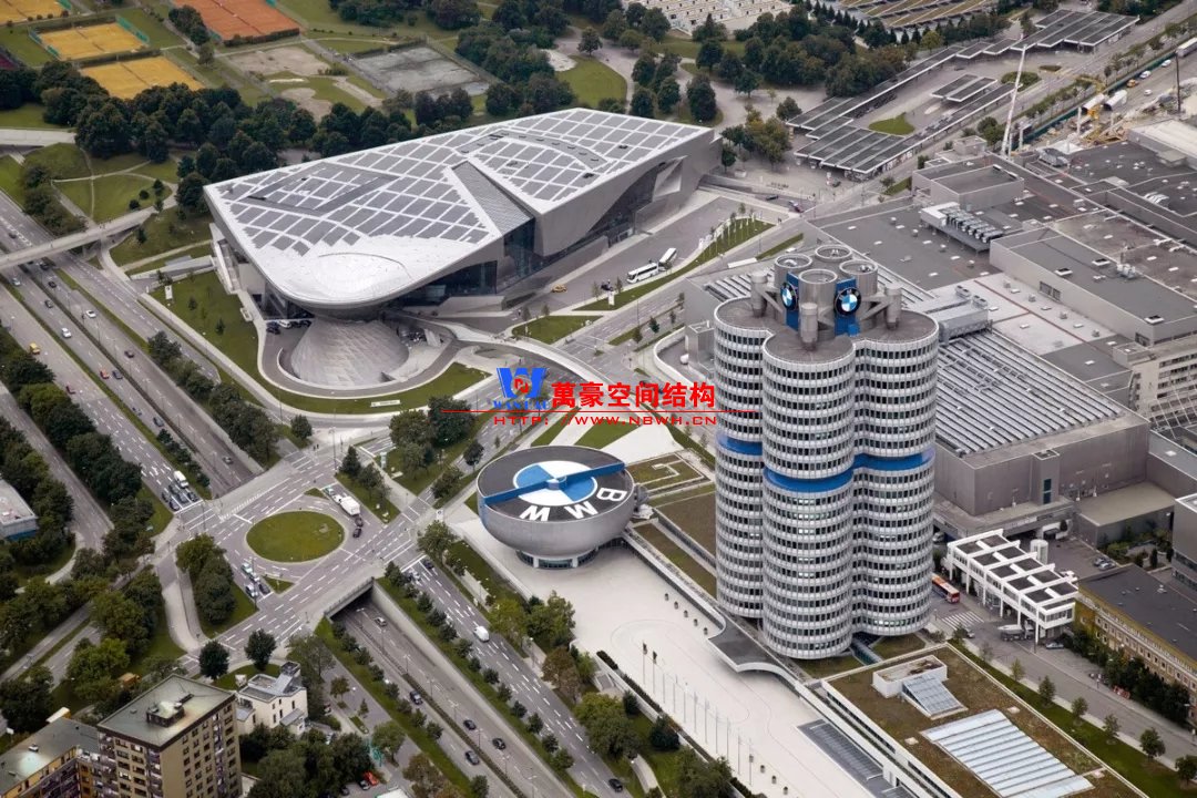 確切地說寶馬在慕尼黑建造了一個總部園區(qū)(BMW Campus),除了總部大廈(BMW Headquarters/Tower),旁邊有一座1973年建成的碗狀建筑物,是德國寶馬博物館(BMW Museum)。再邊上是2008年新建的寶馬世界(BMW Welt),由藍天組(Coop Himmelb(l)au)設計,這個結構也很有特色,以后有機會介紹。