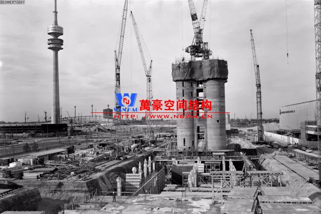 這樣的建造過程極大地縮短了工期,混凝土核心筒耗時4個月;16個月以后,樓層的建造和提升就已全部完成。趕在慕尼黑奧運會之前大樓竣工。