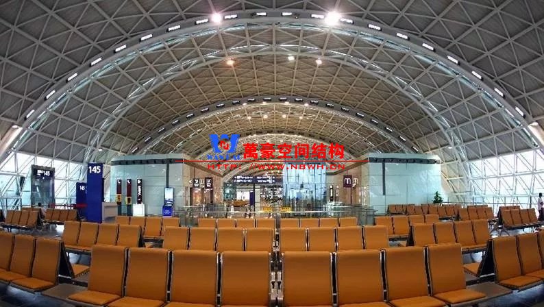 大阪關(guān)西機(jī)場(chǎng)則采用弧形鋼梁+索的結(jié)構(gòu)體系,有效減小了鋼梁尺寸,同時(shí)由于沒(méi)有天窗光線(xiàn)作用,鋼索并不明顯。可能是由于日本是地震多發(fā)地區(qū),外露的支撐構(gòu)件比較多略顯雜亂。