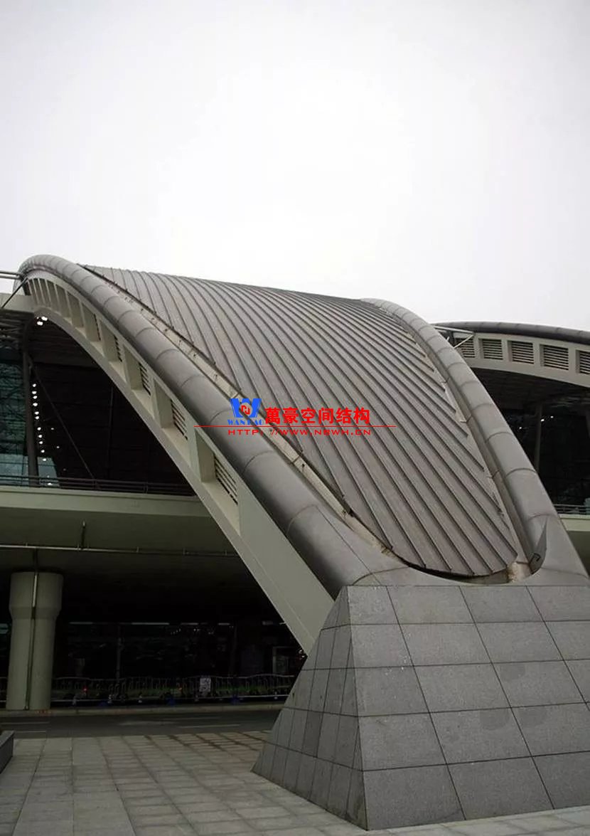 浦東國(guó)際機(jī)場(chǎng)T2航站樓將結(jié)構(gòu)梁在立面彎曲的同時(shí),平面也形成弧線(xiàn)將天窗融合進(jìn)去,室內(nèi)效果也很好。同時(shí)對(duì)節(jié)點(diǎn)也進(jìn)行了精細(xì)化設(shè)計(jì),細(xì)節(jié)處體現(xiàn)了建筑結(jié)構(gòu)融合設(shè)計(jì)的思想。