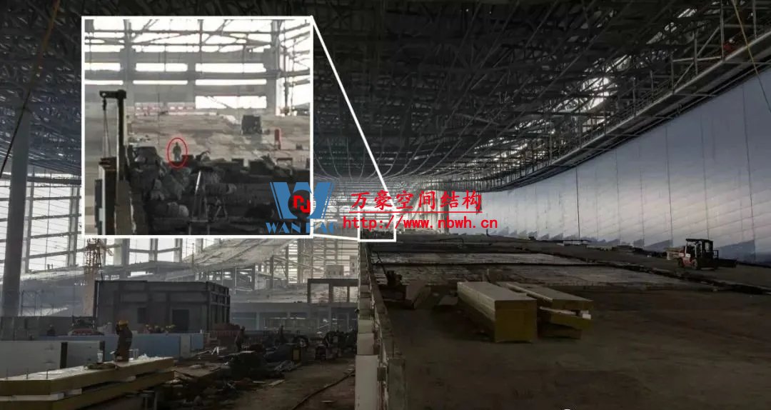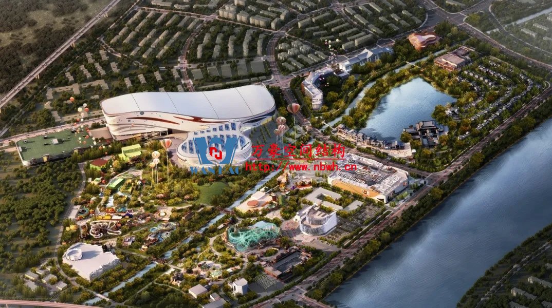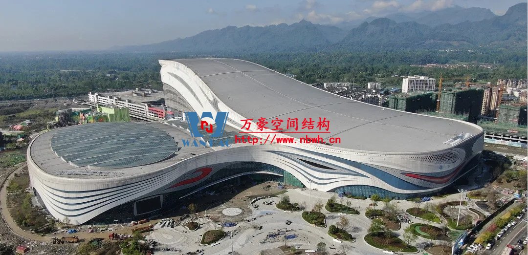 成都融創(chuàng)文旅城水雪綜合體項目是成都融創(chuàng)文旅城的核心主體建筑,主要由雪世界、水世界和停車樓組成,總建筑面積36.76萬平方米,水雪綜合體項目用鋼量約2.4萬噸。其中,雪世界最大長度達(dá)428米,跨度由174米漸變至94米,地下2層、地上5層,整體結(jié)構(gòu)立面高度最低35米,最高85米,是全國最大鋼筋混凝土結(jié)構(gòu)室內(nèi)滑雪場。