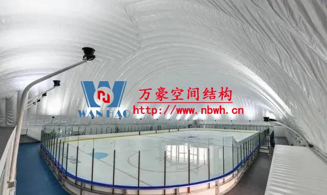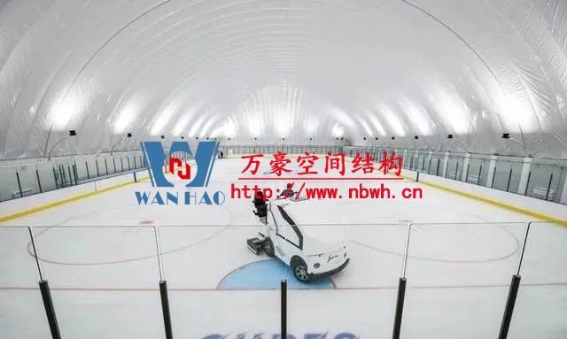 首都體育學院氣膜滑冰館,是首個模塊化裝配式的直冷冰場。位于海淀區(qū)北三環(huán)西路11號,總建筑面積7010平方米,為地上一層,局部二層的結構?;^內部分為南、北兩個場館,每個場館內設有一個奧林匹克標準級冰球場,制冰總面積3600平方米。