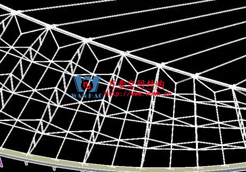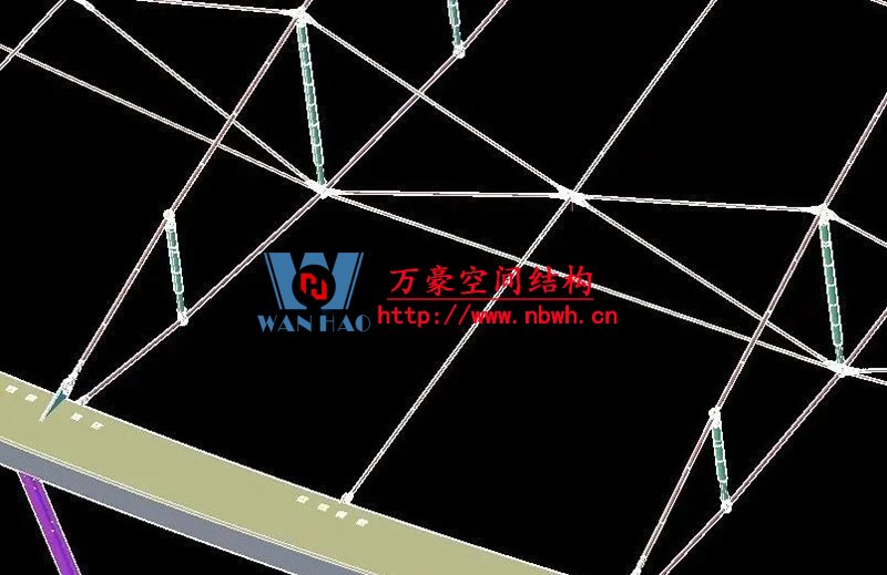 1、整個索網(wǎng)、環(huán)梁和吊塔形成整體受力體系,結(jié)構(gòu)受力傳遞路徑復(fù)雜;