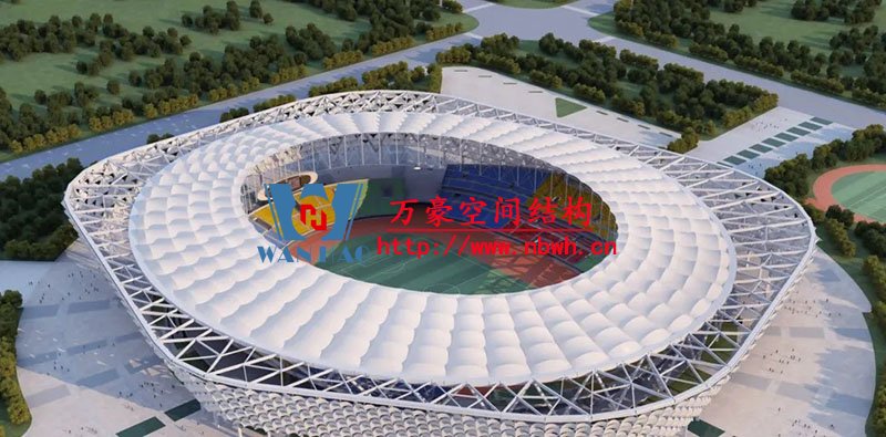 三亞體育場總建筑面積8.8萬余平米,體育場屋蓋為輪輻式索桁架結(jié)構(gòu),平面投影短軸224米、長軸261.8米,中心開口短軸134米,長軸171.8米。為提升結(jié)構(gòu)抗風能力,屋蓋結(jié)構(gòu)布置內(nèi)環(huán)交叉索;為降低內(nèi)環(huán)交叉索對鎖夾造成的不平衡力,該項目創(chuàng)新應(yīng)用了強模比遠高于普通鋼索的CFRP平行板索,以新材料、新構(gòu)件完美解決了結(jié)構(gòu)問題。