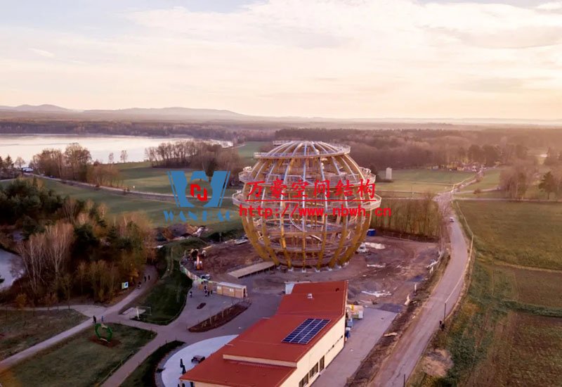在德國,HESS TIMBER 建造了一個木結(jié)構(gòu)球體建筑 Wooden Sphere Steinberg am See。作為世界上最大的可于內(nèi)部行走的木結(jié)構(gòu)球體建筑,從設(shè)計的角度來看,造型新穎獨(dú)特,從工程學(xué)的角度來看也是非凡之作。