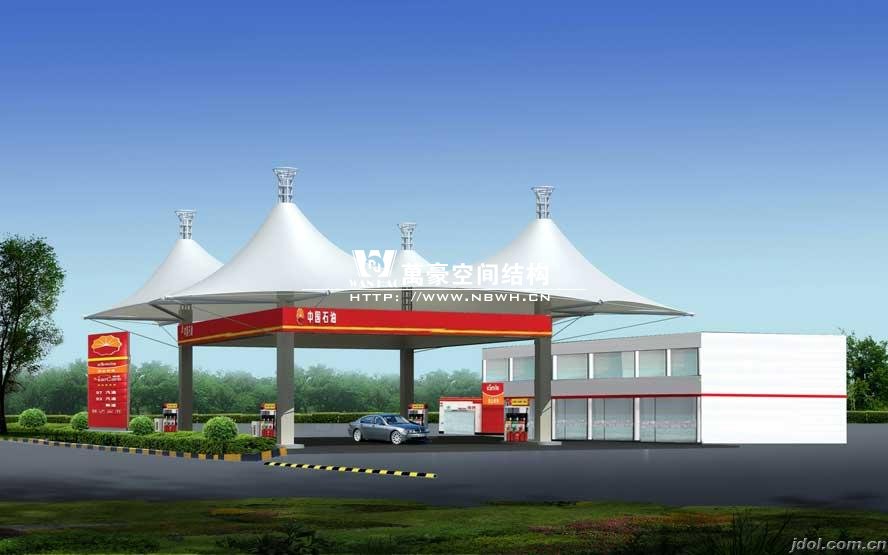 加油站膜結構,一般是指安裝在加油站的膜結構頂棚。膜結構頂棚因其自重輕,具有良好的受力特點,所以成為大跨度空間結構的主要形式之一,加油站膜結構也屬于其范疇。
