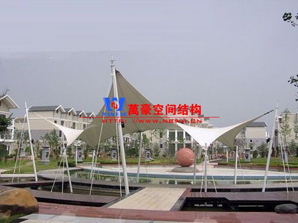 2、膜結(jié)構(gòu)遮陽棚耐候性、耐紫外線性及耐濕性強(qiáng);