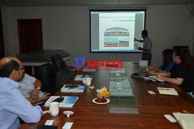 然后,我們陪同迪拜客戶參觀了公司膜結(jié)構(gòu)生產(chǎn)車間。
