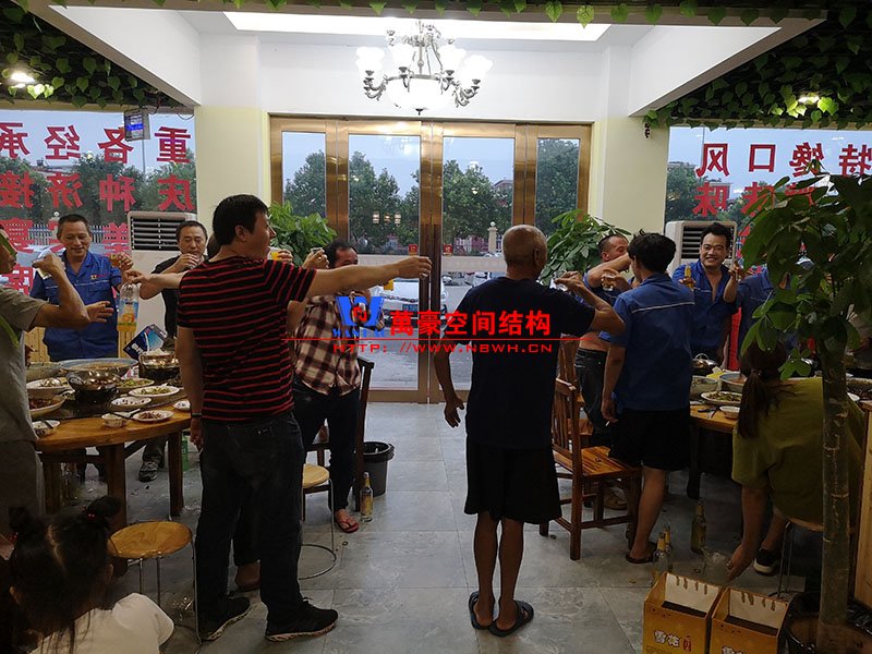 中秋節(jié)假期馬上就要過去了,想必大家都玩的挺開心吧。不知道你們的中秋是怎么過的,是與家人團聚,還是與朋友歡聚呢?萬豪膜結構就不一樣了,我們是整個工廠員工歡聚一堂,共進晚餐,喜迎中秋。 雖然來自五湖四海,相聚在萬豪,大家就是一家人,我們會為了我們的共同目標一起前進。