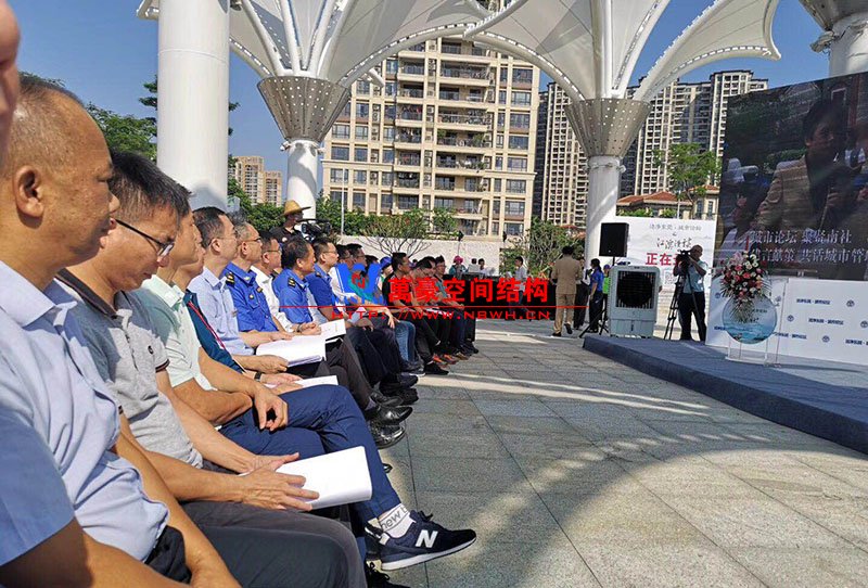 東莞龍舟廣場網(wǎng)格覆膜景觀膜結(jié)構(gòu)竣工半年,本次迎來東莞論壇在景觀膜朦朧照影下召開會議。 膜的效果非常好,看上去整潔漂亮,祝賀我司又添作品。