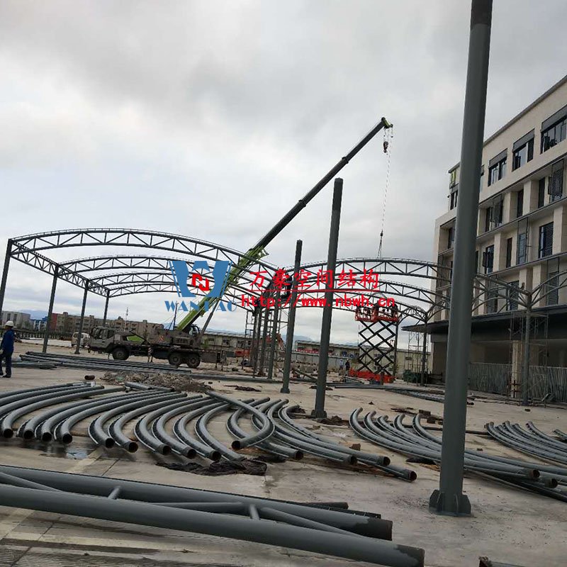 奉化方橋農(nóng)副鋼結(jié)構(gòu)雨棚工程位于浙江省寧波市奉化市內(nèi),此工程用鋼量100噸,膜結(jié)構(gòu)展開面積3500平米,由寧波萬(wàn)豪空間結(jié)構(gòu)工程有限公司承建。