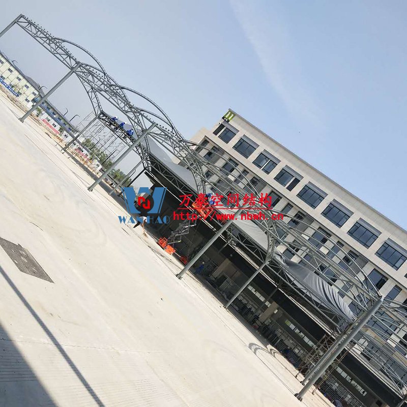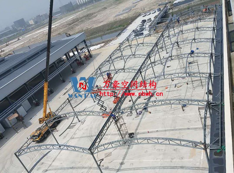 奉化方橋農(nóng)副鋼結(jié)構(gòu)雨棚工程位于浙江省寧波市奉化市內(nèi),此工程用鋼量100噸,膜結(jié)構(gòu)展開面積3500平米,由寧波萬豪空間結(jié)構(gòu)工程有限公司承建。
