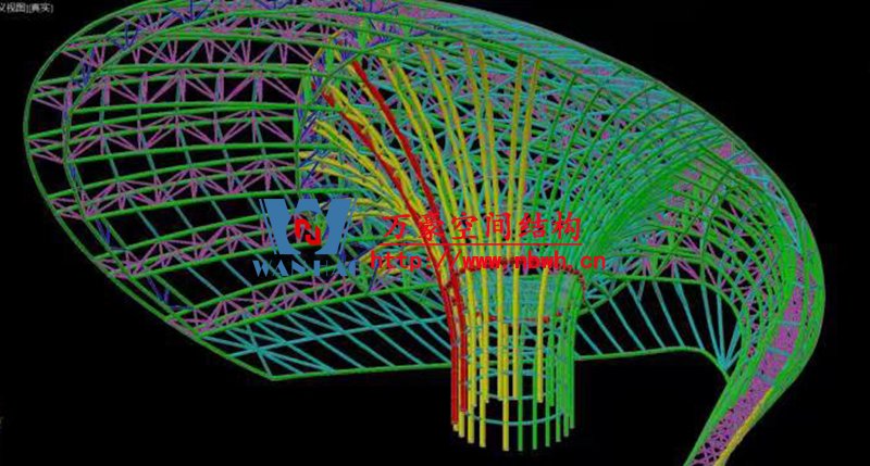 項目造型為貝殼造型,結(jié)構(gòu)復(fù)雜,施工難度非常大,幾乎每一根構(gòu)件都需獨立放樣定位。膜結(jié)構(gòu)則是采用ETFE與PTFE多種膜材組合的方式,更大限度的展現(xiàn)了膜結(jié)構(gòu)在商業(yè)領(lǐng)域的應(yīng)用。