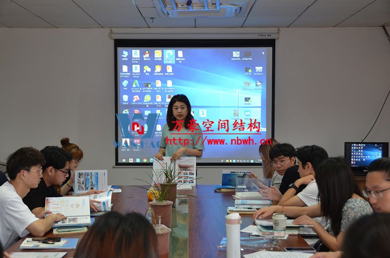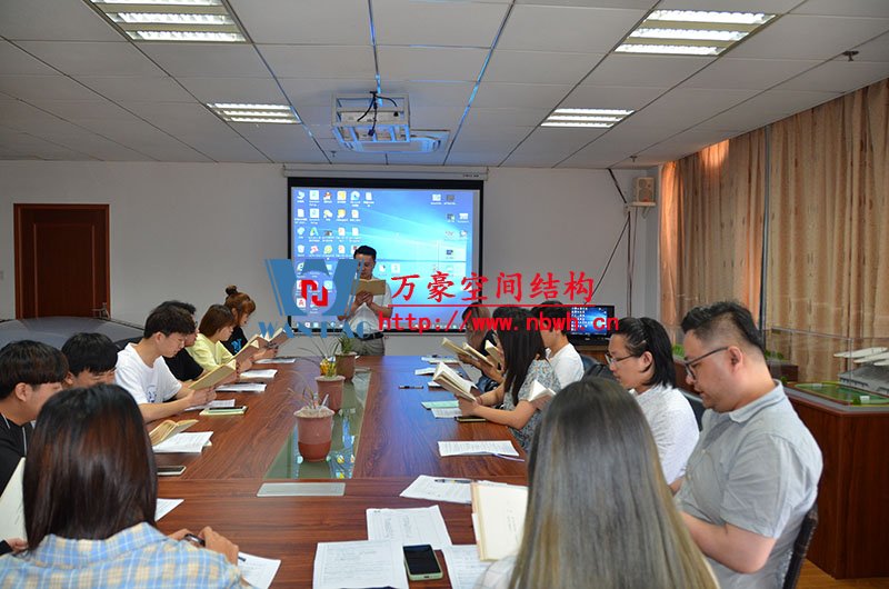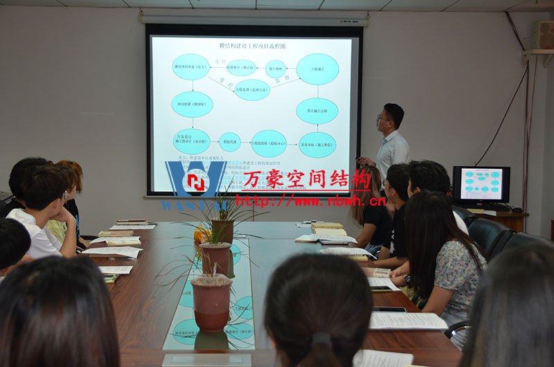 然后,我們的銷售主管教新員工們學(xué)習(xí)了公司晨會流程以及膜結(jié)構(gòu)建設(shè)工程項(xiàng)目流程。