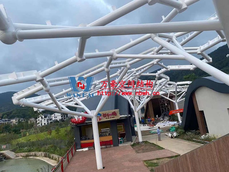 樂清鐵定溜溜樂園膜結(jié)構(gòu)工程位于浙江省溫州市樂清市,項(xiàng)目鋼膜結(jié)構(gòu)雨棚包括6號商業(yè)街蜂窩狀ETFE膜結(jié)構(gòu)、檢票口PTFE膜結(jié)構(gòu)、售票口PVDF膜結(jié)構(gòu)。