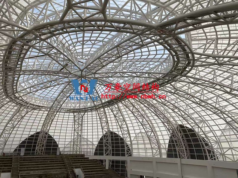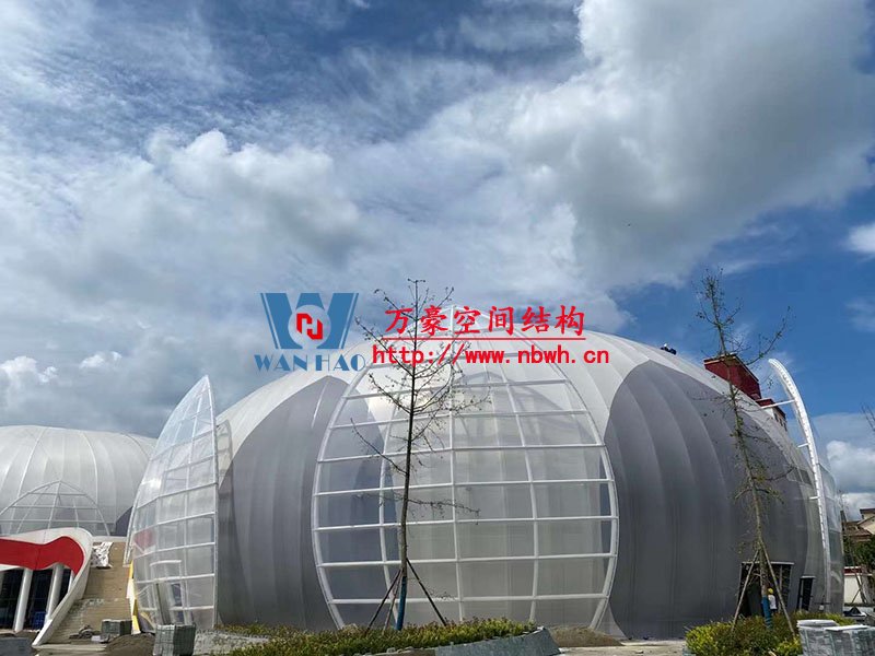 全封閉籃球館和多功能館結(jié)構(gòu)部分采用了部分珩架與單層雙曲面網(wǎng)殼組合,屋面膜選用了不同顏色不同材質(zhì)組合構(gòu)成了含苞待放的花朵,項目落成后將為當?shù)伢w育活動增添活力。