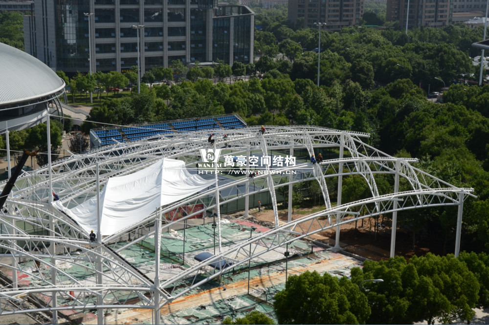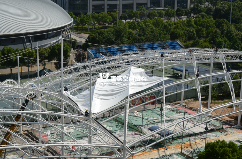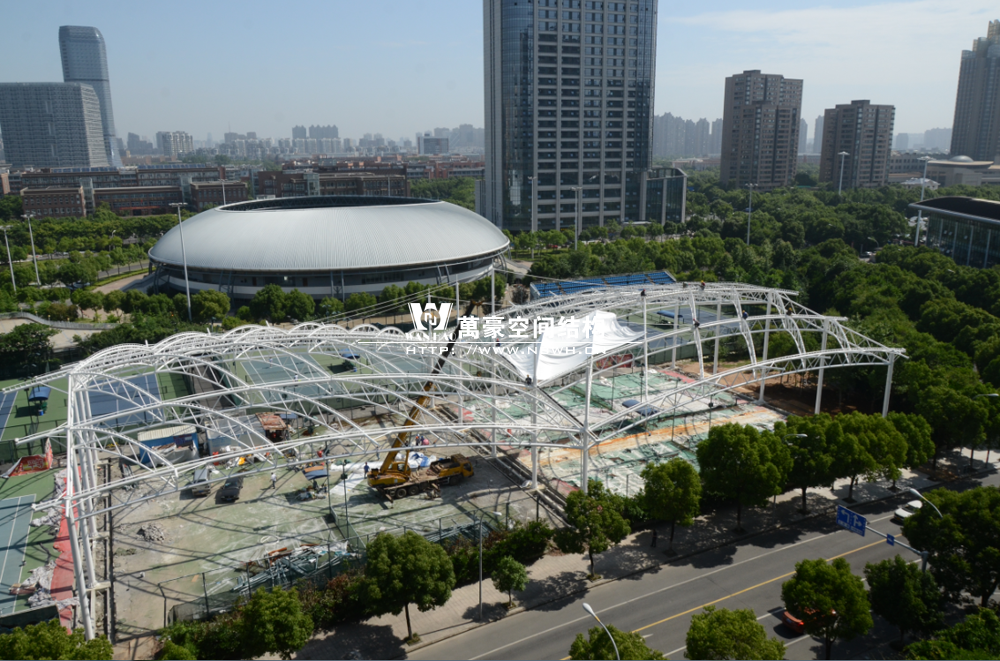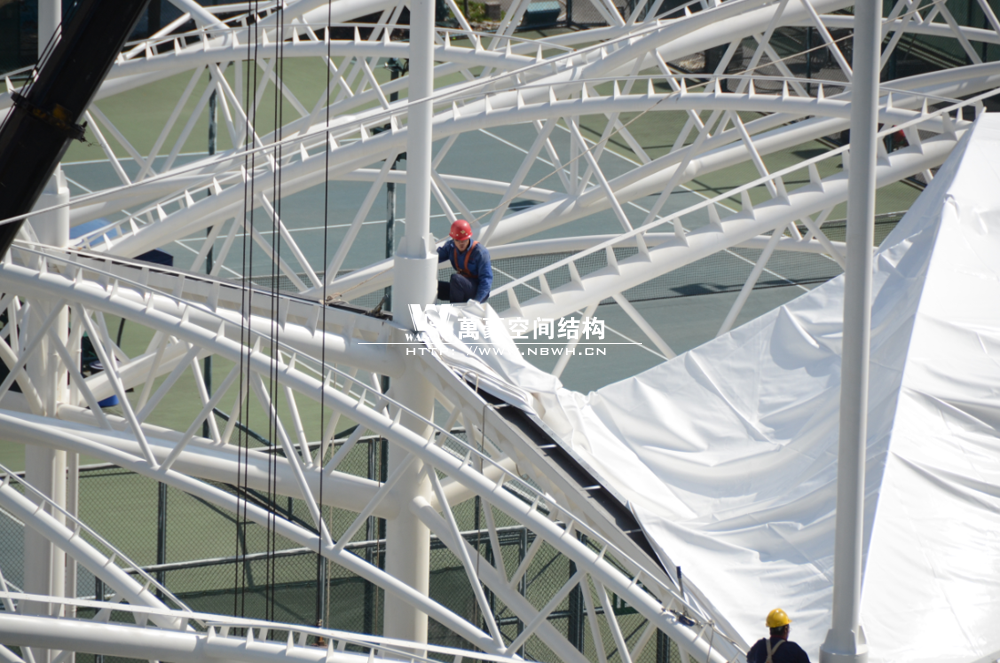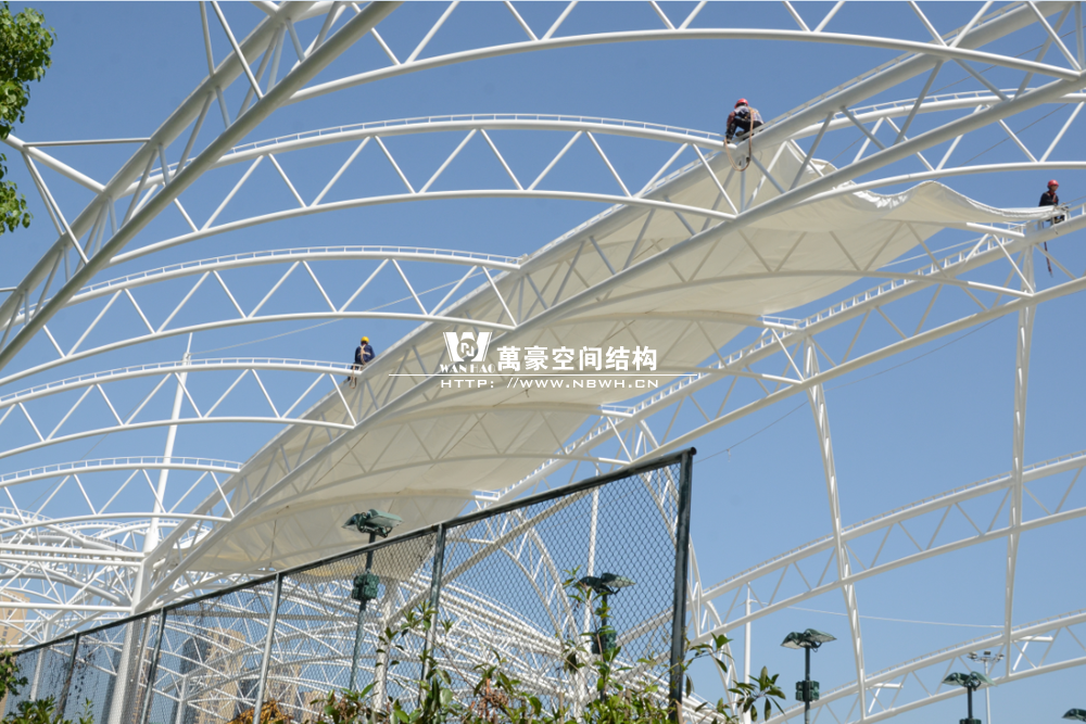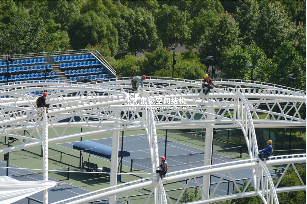 鄞州網(wǎng)球中心膜結(jié)構(gòu)遮陽棚工程鋼結(jié)構(gòu)已完成并經(jīng)初步驗收
