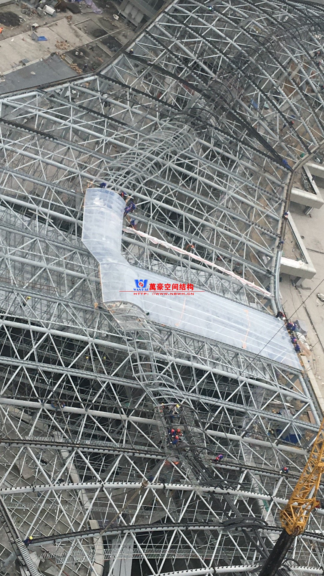 大家可以看到,已經(jīng)有幾處安裝上整塊的大膜了。接下來(lái)工作的重點(diǎn),就是把剩下的區(qū)域全部安裝上膜材。雖然過(guò)程比較艱辛,但是看著這項(xiàng)工程一步步的走向終點(diǎn),大家的斗志還是激昂的。
