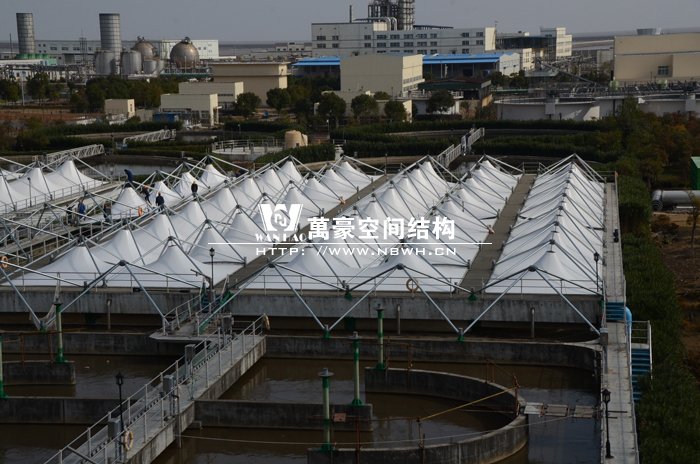 寧波北區(qū)污水處理廠廠址位于鎮(zhèn)海新泓口甬舟高速與化工區(qū)主干道交叉口附近,污水廠一期建設(shè)用地15.48公頃,膜結(jié)構(gòu)加蓋面積達(dá)一萬多平方米。