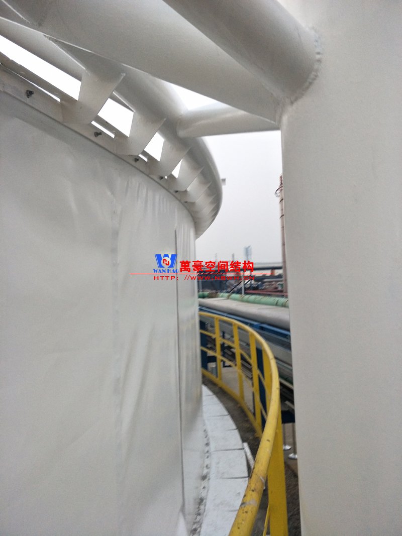 平湖衛(wèi)星石化污水廠膜結(jié)構(gòu)加蓋密封系統(tǒng)工程項目膜結(jié)構(gòu)展開面積2000平米,用鋼量35噸,由寧波萬豪空間結(jié)構(gòu)工程有限公司承建。