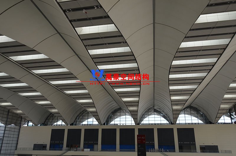 青島紅島國際會議中心幕墻膜結(jié)構(gòu)工程,由寧波萬豪空間結(jié)構(gòu)工程有限公司承建,現(xiàn)場測量、深化設(shè)計(jì)、制作及安裝由寧波萬豪全權(quán)負(fù)責(zé)。該工程用鋼量1000多噸,PTFE室內(nèi)屋面膜結(jié)構(gòu)展開面積17000多平方米,PTFE室外屋面膜結(jié)構(gòu)展開面積20000多平方米。
