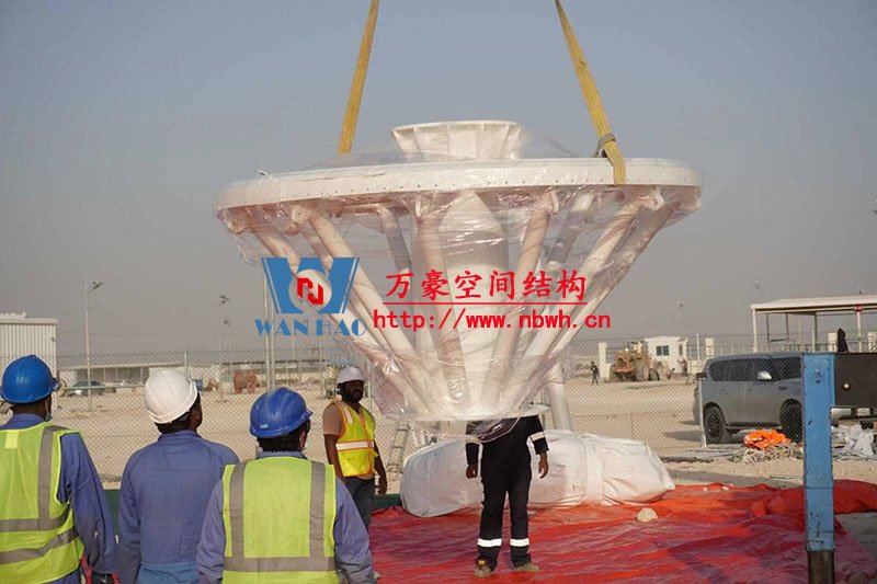 卡塔爾駱駝市場膜結(jié)構(gòu)項目位于卡塔爾國(卡塔爾是亞洲西南部的一個阿拉伯國家,位于波斯灣西南岸的卡塔爾半島上,南面與沙特接壤),該項目膜結(jié)構(gòu)展開面積2000平米,用鋼量100噸。