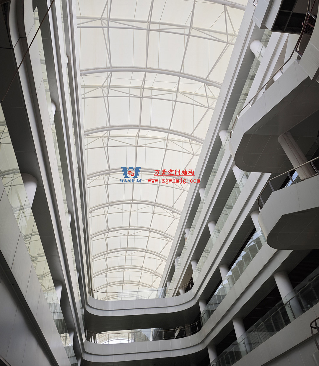 海南醫(yī)學(xué)院第一附屬醫(yī)院江東新院區(qū)膜結(jié)構(gòu)工程,該項(xiàng)目用鋼量約360噸,PTFE膜結(jié)構(gòu)展開(kāi)面積約4500平米。