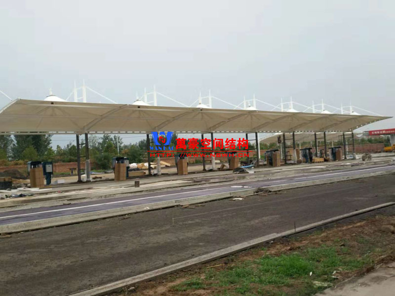 內(nèi)黃縣公交充電樁膜結(jié)構(gòu)車棚工程位于河南省安陽市內(nèi)黃縣龍翔物流公交站內(nèi),由寧波萬豪空間結(jié)構(gòu)工程有限公司承建。本工程使用的是白色pvc膜材,膜結(jié)構(gòu)展開面積2300平米,用鋼量65噸,共計(jì)70個(gè)車位。