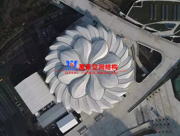 建筑下半部分由24片“小花瓣”組成,上半部分則是由8片會(huì)旋轉(zhuǎn)的“大花瓣”構(gòu)成。它有地下一層、地上三層,建筑總高37.956米,總建筑面積5萬(wàn)平方米,總席數(shù)1.56萬(wàn)座,可舉辦國(guó)際單項(xiàng)比賽和國(guó)內(nèi)比賽。