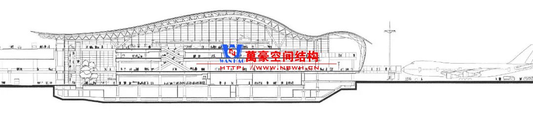 關(guān)西機(jī)場建筑設(shè)計概念上追求連續(xù)的空間感受。建筑建筑上呈現(xiàn)流動的形態(tài)。結(jié)構(gòu)上采用了82.8米超大跨度的空間桁架。