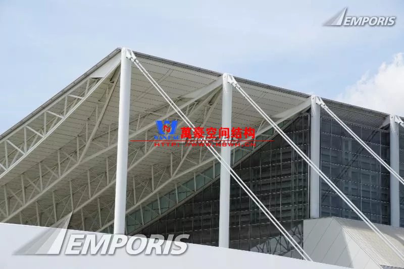 空腹桁架的直腹桿承受較大的剪力和彎矩,桁架整體的效率不如普通桁架,但形狀更加簡潔明快,在建筑功能上獨(dú)特的適用性。