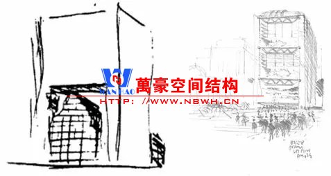 當然,懸掛結構的結構效率不高。結構的造價往往是偏高的,但是綜合考慮其他方面,懸掛結構不失為一種創(chuàng)新性的選擇。