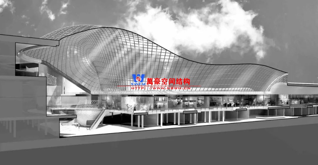 隨著建筑構(gòu)型手段和建造技術(shù)的進(jìn)步,出現(xiàn)了越來(lái)越多的自由曲面天幕。這一類曲面沒(méi)有嚴(yán)密的數(shù)學(xué)邏輯,如何以輕巧的結(jié)構(gòu)形式構(gòu)建是結(jié)構(gòu)設(shè)計(jì)最大的難點(diǎn)。