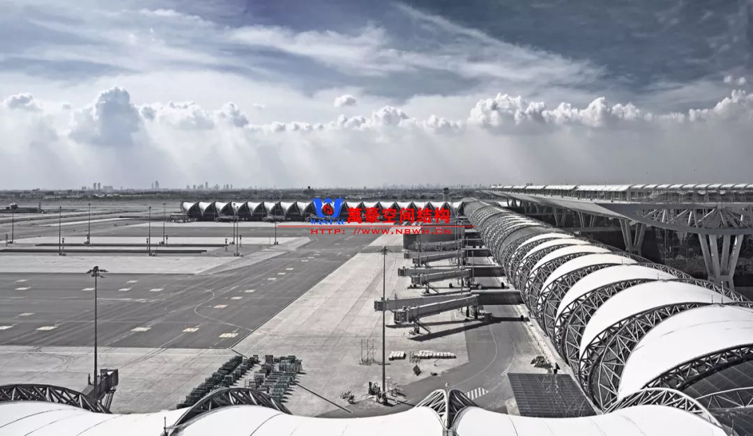 除了實(shí)腹鋼梁,我們還可以選擇更加輕盈的張弦梁,其主要表現(xiàn)即在張弦梁的造型以及索節(jié)點(diǎn),建筑效果走的路線(xiàn)也多為精細(xì)風(fēng)。其中經(jīng)典案例有浦東國(guó)際機(jī)場(chǎng)T1航站樓和東京羽田機(jī)場(chǎng),歷經(jīng)多年也不顯得過(guò)時(shí)。