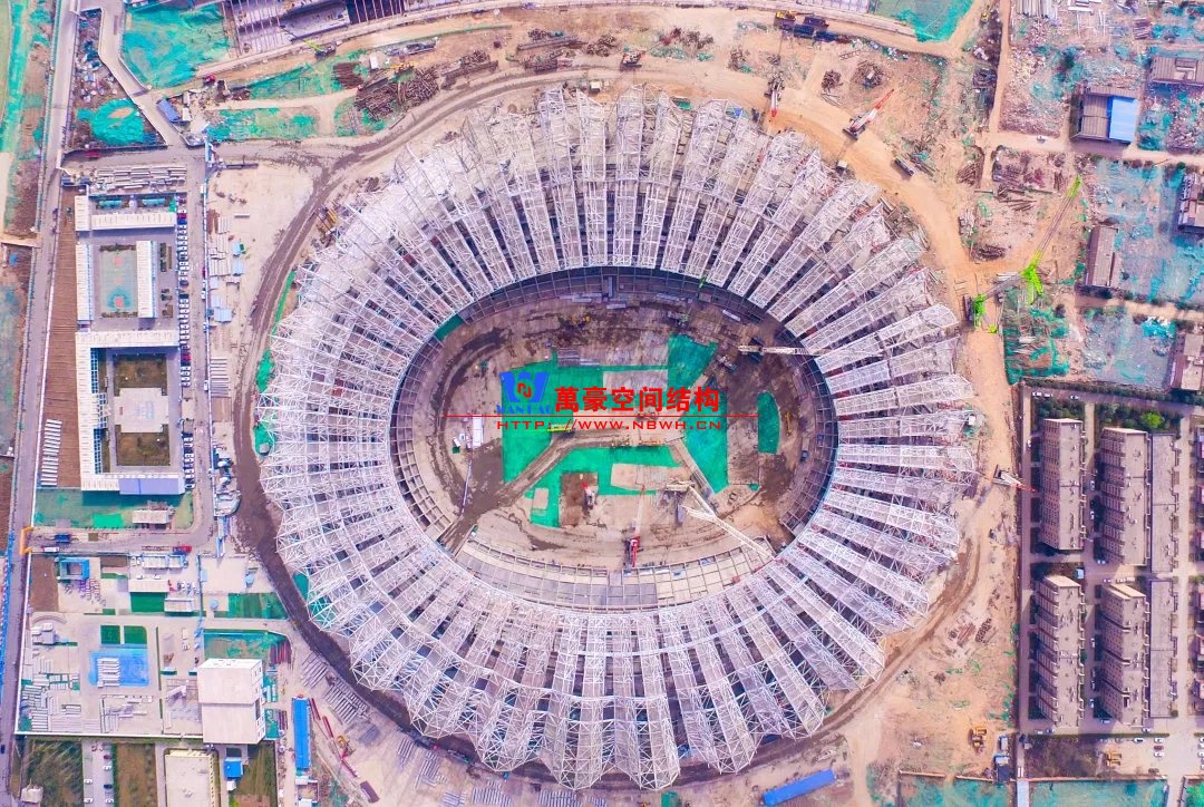 2019年3月28日,體育場(chǎng)罩棚鋼結(jié)構(gòu)合攏