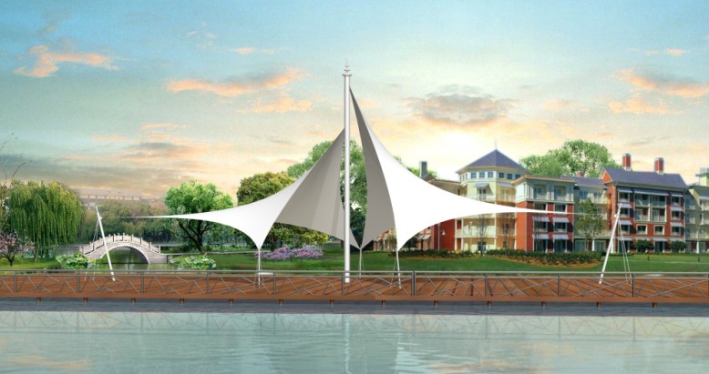 膜結(jié)構(gòu)是用高強(qiáng)度柔性薄膜材料經(jīng)受其它材料的拉壓作用而形成的穩(wěn)定曲面,能承受一定外荷載的空間結(jié)構(gòu)形式。其造型自由、輕巧、柔美,充滿力量感,阻燃、制作簡(jiǎn)易、安裝快捷、節(jié)能、易于、使用安全等優(yōu)點(diǎn),因而使它在世界各地受到廣泛應(yīng)用。