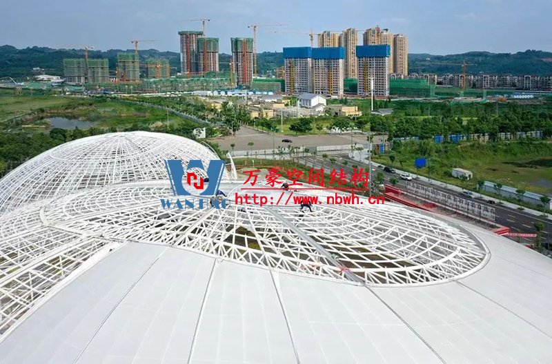目前訓練中心主體結構已修建完成,屋蓋系統(tǒng)膜結構、室內(nèi)裝潢正在同步施工。